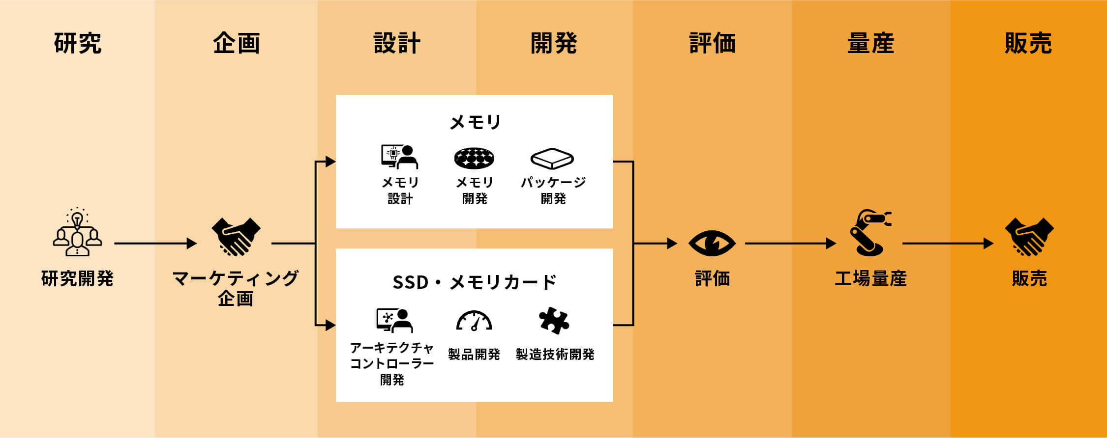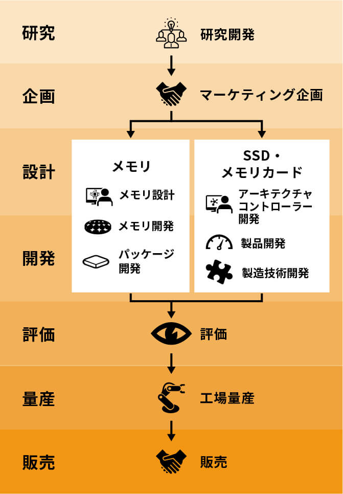 キオクシアはフラッシュメモリとSSD製品の研究から販売まで、一貫して手がけているのが強みです。