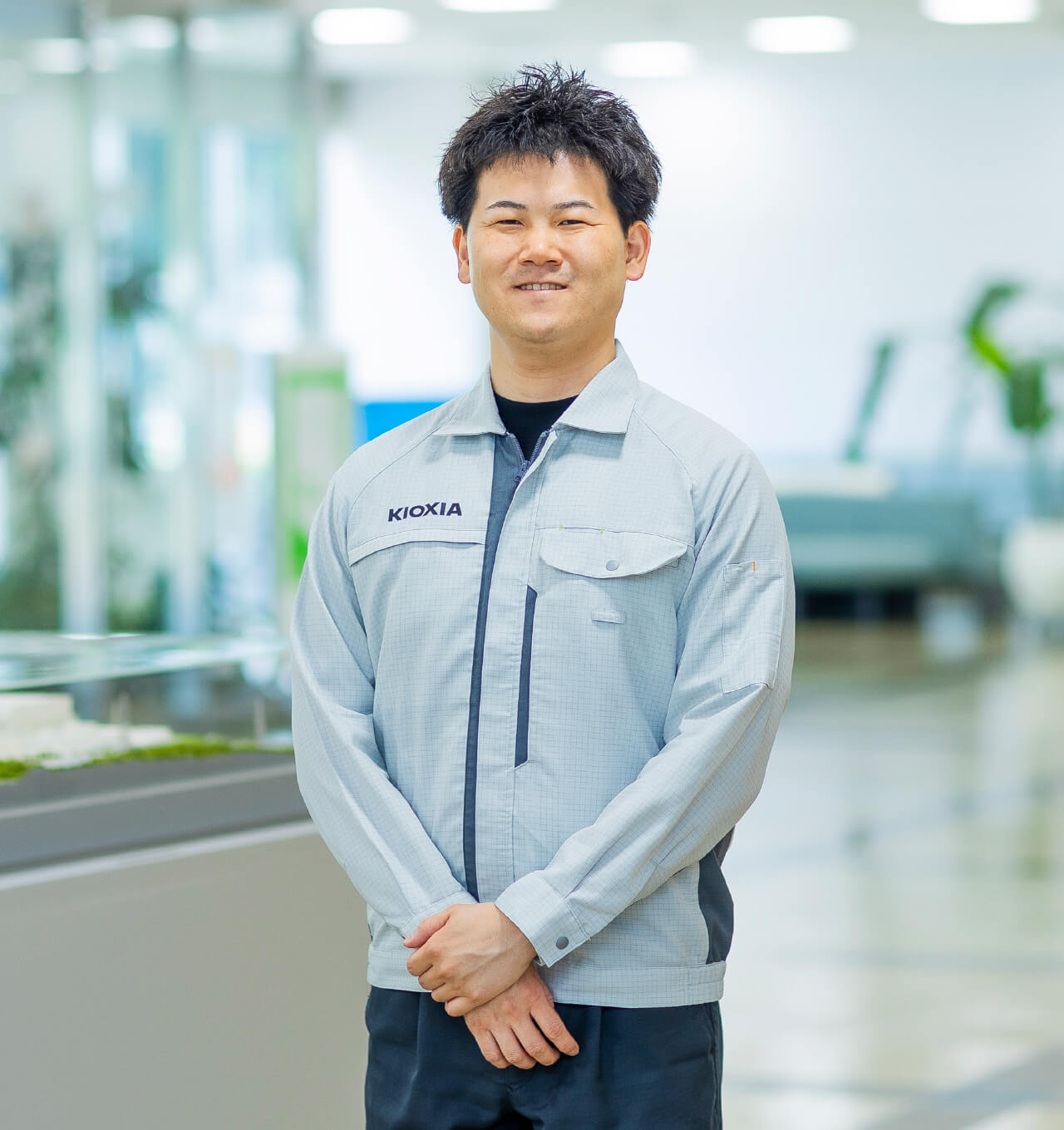 前職は自動車部品メーカーで生産管理を担当しながら、工場のIoT推進を任されていましたが、もっと製造の現場に近いところで力を発揮したいとの思いから転職を決めました。キオクシアの四日市工場は、スマートファクトリーとして自動化が進んでいると知り、興味を持ちました。特に半導体製造の基盤形成を担う前工程部分はさまざまな装置がシステム制御されており、IT化に本気で取り組んでいると魅力を感じ、システム開発と製造の現場の間に身を置く立場のプロとして挑戦したく入社を決めました。